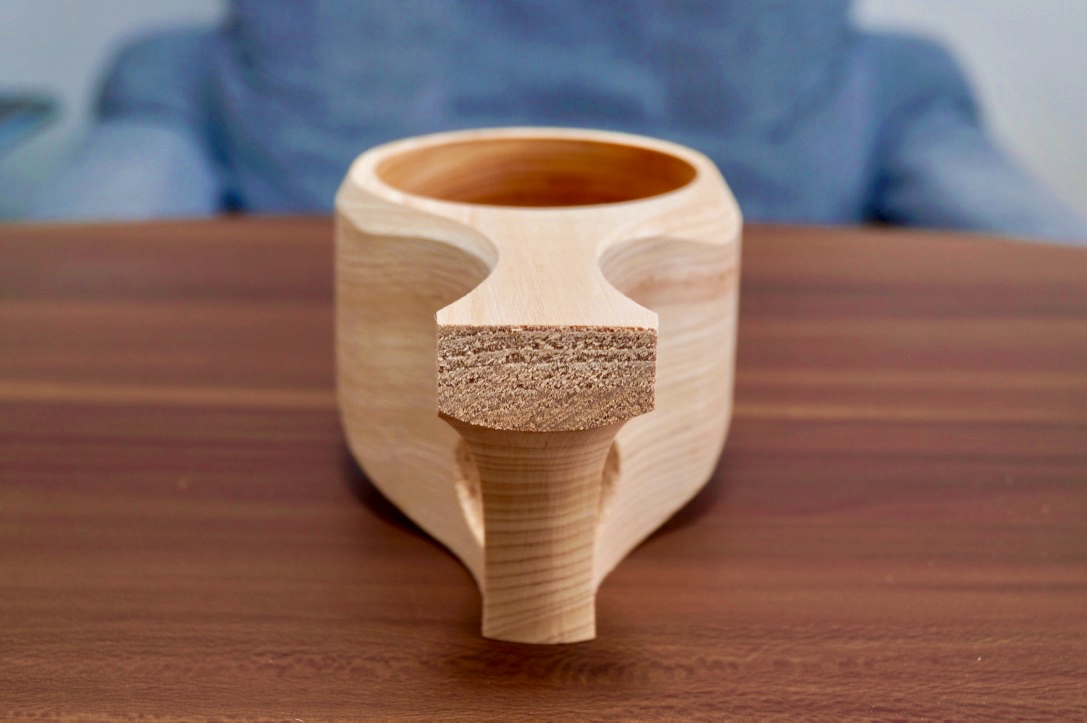 白樺のコブはとても硬いので、それを手作業でカップにするには